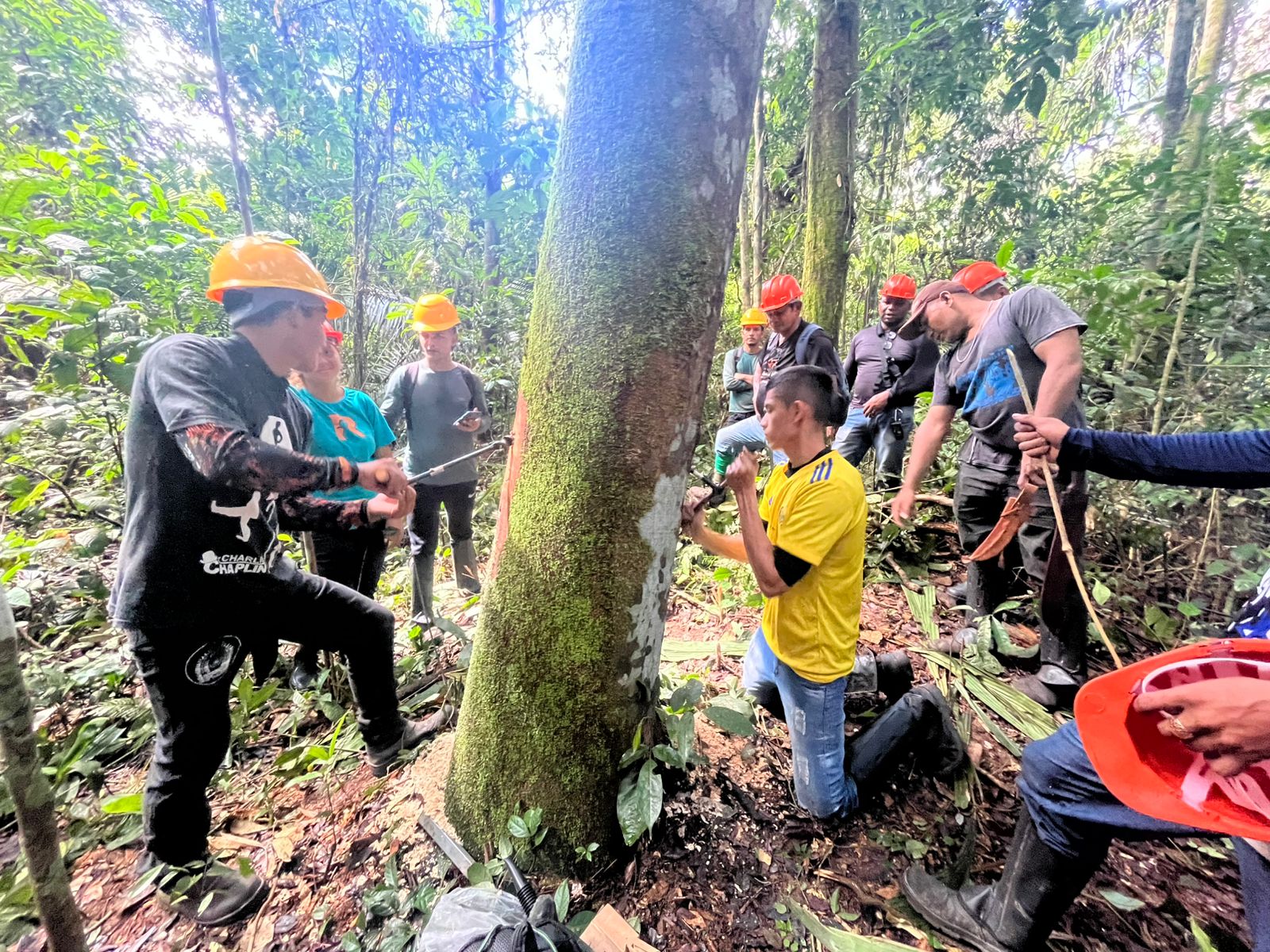 A capacitação técnica se soma ao trabalho de mapeamento e georreferenciamento das árvores de copaíba nas comunidades, destacou a engenheira florestal do PSA, Laura Lobato: “Nosso papel aqui também é mapear, deixar tudo georreferenciado, como parte da assistência técnica nessa cadeia”.