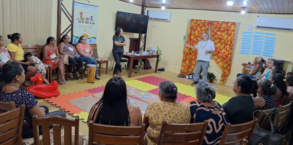 Maricleide e outras 22 parteiras do baixo Tapajós, Amazonas, Arapiuns e Lago Grande, participaram no período de 26 e 27 do encontro troca de saberes promovido pelo Projeto Saúde e Alegria, por meio do Programa Saúde na Floresta, buscando fortalecer uma rede de suporte básico às gestantes, a partir da formação de quem já exerce o ofício tradicionalmente e é reconhecida como referência em acolhimento e cuidados primários pelas comunidades.