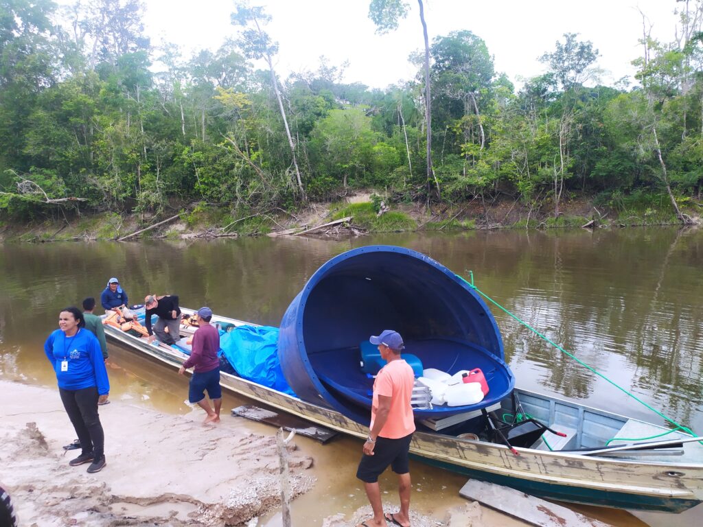 Fazer chegar os equipamentos de manejo delicado com segurança, transportados em caminhões, balsas e bajaras é um dos grandes desafios da logística. Mas é uma das alegrias do técnico do PSA, Silvanei Rodrigues que a cada nova execução, vibra pela conquista e celebra com as aldeias: “Acabamos de colocar pra funcionar uma bomba trifásica de um cv bombeando e mandando água para a aldeia que está a cerca de mil metros de distância. Nossa equipe com apoio da aldeia depois de muito trabalho, coloca em operação pra valer no território munduruku. Missão cumprida”, comemorou.