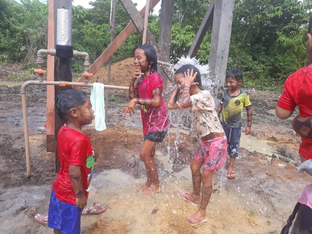 Uma grande mobilização para implementar sistemas de água e saneamento em seis aldeias do alto Tapajós. Nessa jornada de perfuração de poços profundos, construção e implementação de sistemas solares, foram contempladas as seguintes aldeias com os serviços: