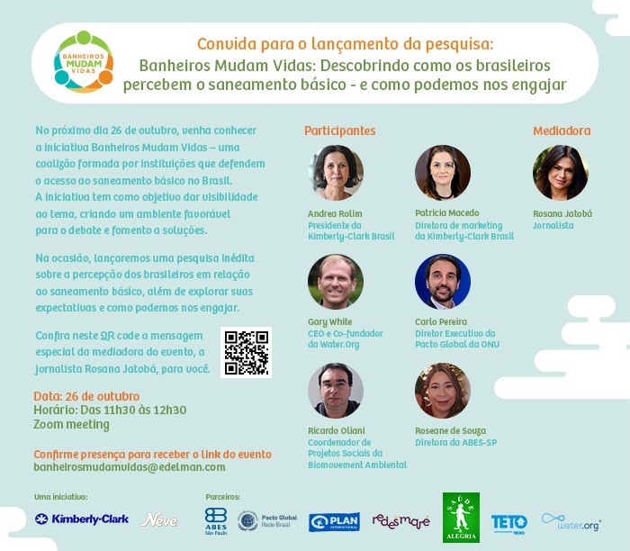 “Há mais de cinco anos a Kimberly-Clark apresenta uma jornada de forte atuação do programa Banheiros Mudam Vidas no Brasil, com iniciativas que já possibilitaram o acesso a banheiros seguros, água potável e educação sobre higiene a mais de 1.200.000 pessoas em comunidades vulneráveis no país”, declara Andréa Rolim, presidente da Kimberly-Clark no Brasil. “A falta de saneamento afeta a saúde e a dignidade de bilhões de pessoas em todo o mundo e, como companhia, queremos colaborar para transformar essa realidade, para ampliar ainda mais as ações concretas, conversas e fomentar articulações entre diversos atores em torno de um futuro mais sustentável e saudável para toda a sociedade.”, continua a executiva.