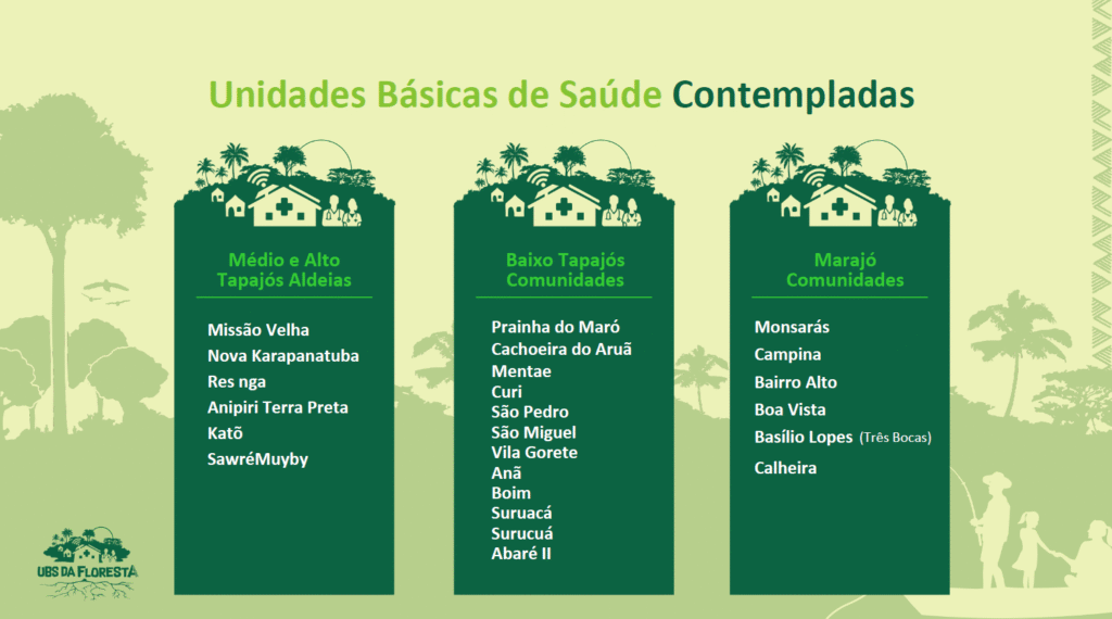 O projeto prevê a instalação em 24 UBS localizadas em Santarém, Itaituba, Jacareacanga e municípios da Ilha do Marajó. Ao todo, atenderá cerca de 30,5 mil pessoas, sendo 10 mil diretamente. Entre as unidades contempladas, cinco atendem comunidades quilombolas e treze, populações indígenas de cinco etnias diferentes.