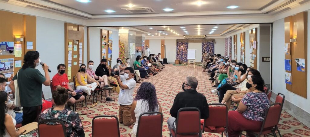 O encontro do Programa Vozes Pela Ação Climática Justa reúne representantes de organizações que se integram ao projeto para compartilhamento de experiências locais sobre o debate do tema em seus respectivos territórios. O Projeto Saúde e Alegria coordena a coalização ‘Vozes do Tapajós combatendo as Mudanças Climáticas’ integrada por seis instituições com atuação na região do alto e médio Tapajós e baixo Amazonas. Juntos, Saúde e Alegria, Sociedade para Pesquisa e Proteção do Meio Ambiente (SAPOPEMA), Conselho Indígena Tapajós e Arapiuns (CITA), Conselho Indígena Tupinambá (CITUPI), Suráras do Tapajós, Coletivo Audiovisual Munduruku Dajekapapeypi e Sindicato dos Trabalhadores e Trabalhadoras Rurais de Santarém (STTR), estão promovendo uma agenda comum sobre o tema das mudanças climáticas, agregando e fortalecendo iniciativas que já compõem a agenda de trabalho das organizações.