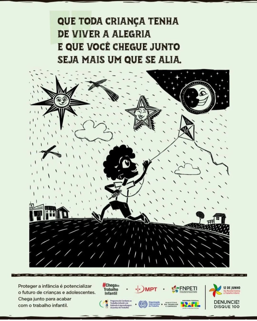 O objetivo da campanha nacional é convocar a sociedade a lutar contra o trabalho infantil. Com poesia de Bráulio Bessa e desenhos inspirados na arte do cordel, FNPETI, MPT, Ministério do Trabalho e Emprego, o Programa de Combate ao Trabalho Infantil da Justiça do Trabalho e OIT buscam conscientizar todo o país sobre essa grave violação dos direitos humanos, no mês de luta contra o trabalho infantil.