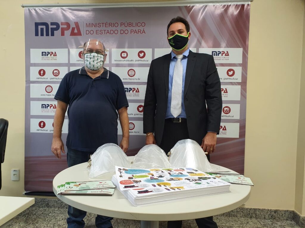 Proteger quem trabalha nos pontos mais movimentados da cidade como feiras e mercados assim como quem frequenta esses espaços é o objetivo da mais recente doação de máscaras face shields do Saúde e Alegria. Nesta etapa, os itens foram entregues na Promotoria de Justiça de Santarém que fez o pedido ao PSA, após entrar em contato com representantes da Aprusan e Colônia de Pescadores Z-20 para perguntar o interesse sob condição de obrigatoriedade de utilização, explicou o Promotor de Justiça Bruno Fernandes. “Esclareci a necessidade do uso como forma de aumentar o protocolo de segurança das feiras e mercados. Haverá fiscalização do Ministério Público que vai exigir da Secretaria de Agricultura que faça a fiscalização semanal dos associados para que eles sejam obrigados a usar o equipamento”.