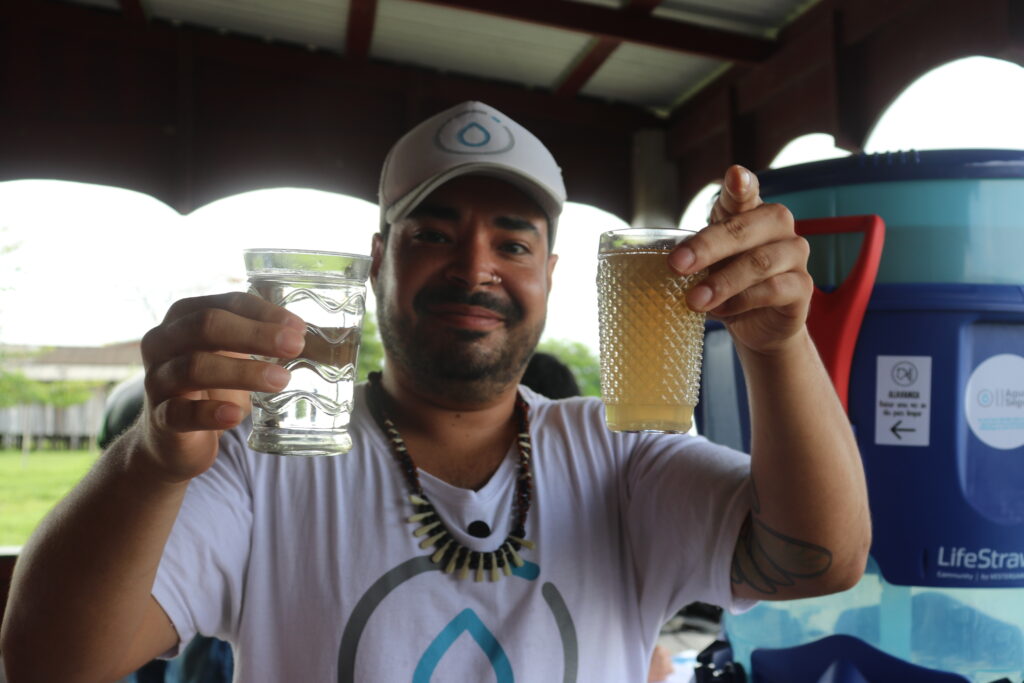 Iranilce Dos Santos Corrêa, da Comunidade Santo Antônio, destacou a diferença trazida pelo filtro. “É algo que vai beneficiar muito nossa família, porque a condição da nossa água (realmente para consumo, ela) não é uma água boa. A gente toma porque é a única que tem. Então pra vocês verem: ó, a diferença aqui, ó, uma água dessa aqui, ó. Poxa, maravilha pra gente.”