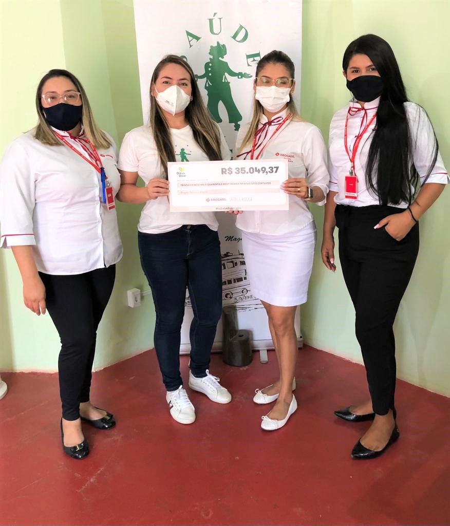 Equipe da Drogasil de Santarém visitou as dependências do Projeto Saúde e Alegria (PSA) e realizou entrega de cheque no valor de 35.049,37, fruto das vendas da revista editora Mol no Dia de Doar;