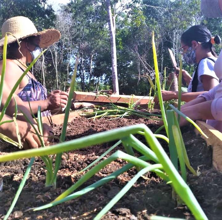 “Mesmo com a pandemia nós não podemos ficar parados. Tem pessoas que estão realmente precisando e precisando pra ontem e não dá pra gente esperar. A gente fica muito feliz” – Ana Maria, integrante da Horta Comunitária de Alter do Chão.