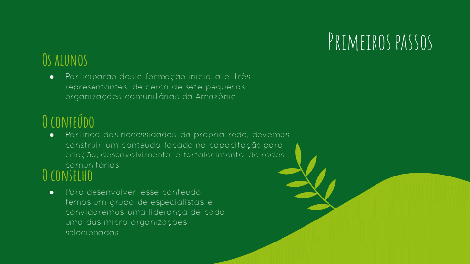 O objetivo da iniciativa é conectar comunidades desconectadas por meio do desenvolvimento de modelos, capacidades e formas de sustentabilidade para populações com foco em assistência técnica, capacitação, assessoria para advocacy e mobilização comunitária.