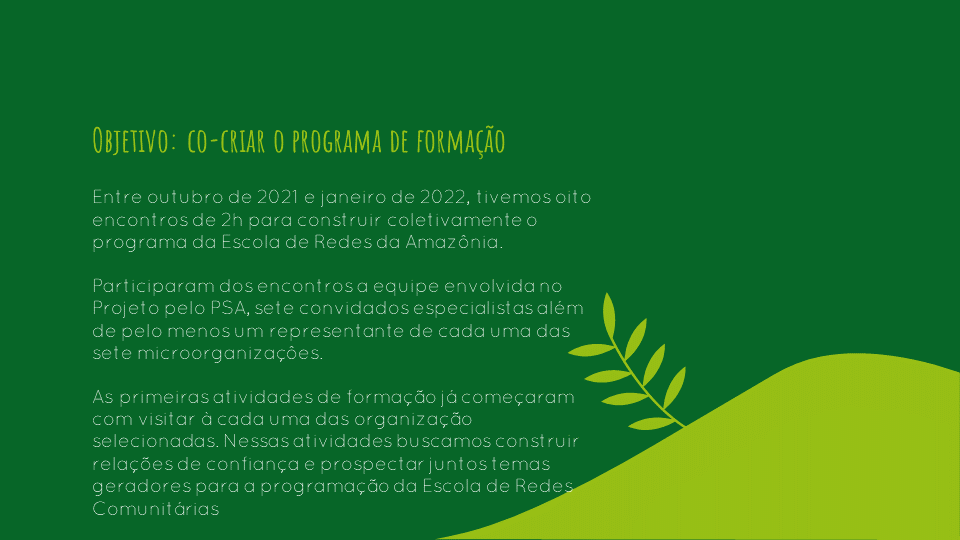 As aulas iniciaram no mês junho de 2022 a partir de conteúdos temáticos pensados coletivamente para fortalecer as redes comunitárias envolvidas.