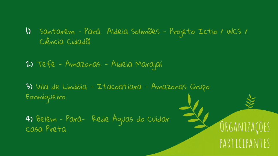 A escola possui 21 alunos em três estados da Amazônia Legal (Acre, Amazonas e Pará). As comunidades selecionadas que possuem integrantes na formação são: no Pará, os projetos Ciência Cidadã na Aldeia Solimões e Guardiöes do Bem Viver no PAE Lago Grande – ambos no município de Santarém – e a Rede Águas do Cuidar/ Casa Preta na Ilha de Caratateua, grande Belém. No estado do Amazonas, a Aldeia Marajaí, município de Alvarães – Médio Solimões; o Grupo Formigueiro de Vila de Lindóia em Itacoatiara; e a Rede Wayuri em São Gabriel da Cachoeira. No Acre, a Aldeia Puyanawa em Mâncio Lima.