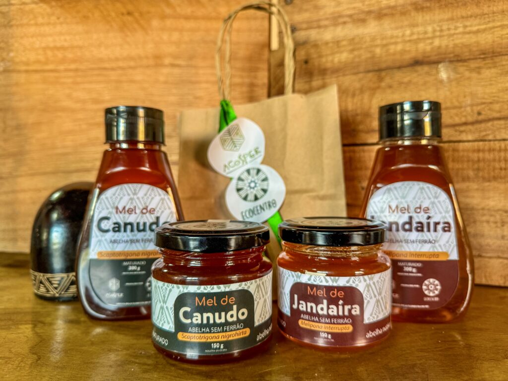 - Casa do Mel de Abelhas sem Ferrão: Além dos óleos, o Ecocentro também abriga uma estrutura dedicada à produção de mel por abelhas sem ferrão. Essa iniciativa está alinhada com a estratégia dos cooperados da Acosper, proporcionando oportunidades para as famílias envolvidas. Com o selo de inspeção da Adepará, o mel está apto para comercialização.