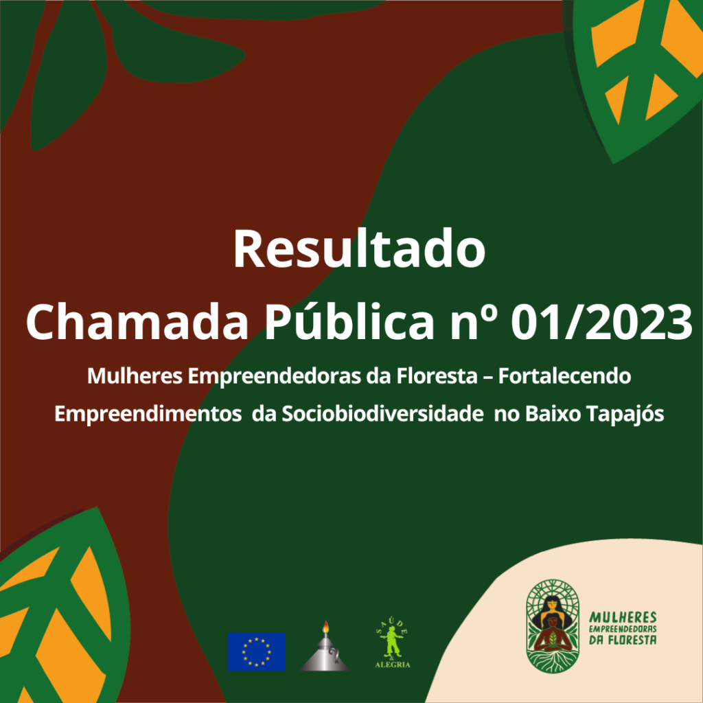 O Sindicado de Trabalhadores Rurais Agricultores e Agricultoras Familiares de Santarém, em parceria com o Projeto Saúde e Alegria tem a satisfação em compartilhar o resultado da chamada pública Nº01/2023 MULHERES EMPREENDEDORAS DA FLORESTA FORTALECENDO EMPREENDIMENTOS DA SOCIOBIODIVERSIDADE NO BAIXO TAPAJÓS, cujo objetivo é fortalecer, empoderar e potencializar empreendimentos que trabalham com negócios da Sociobiodiversidade.
