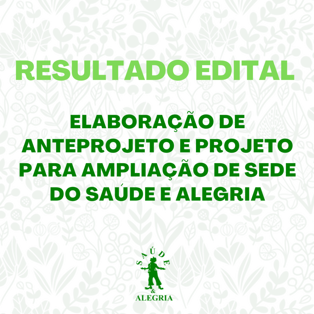 O Centro de Estudos Avançados de Promoção Social e Ambiental – CEAPS torna público o resultado do Edital TDR 043/2022 para contratação de pessoa jurídica especializada para elaboração de anteprojeto e projeto executivo da sede do Projeto Saúde e Alegria: