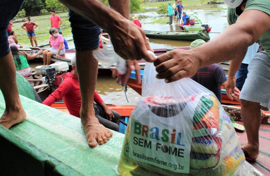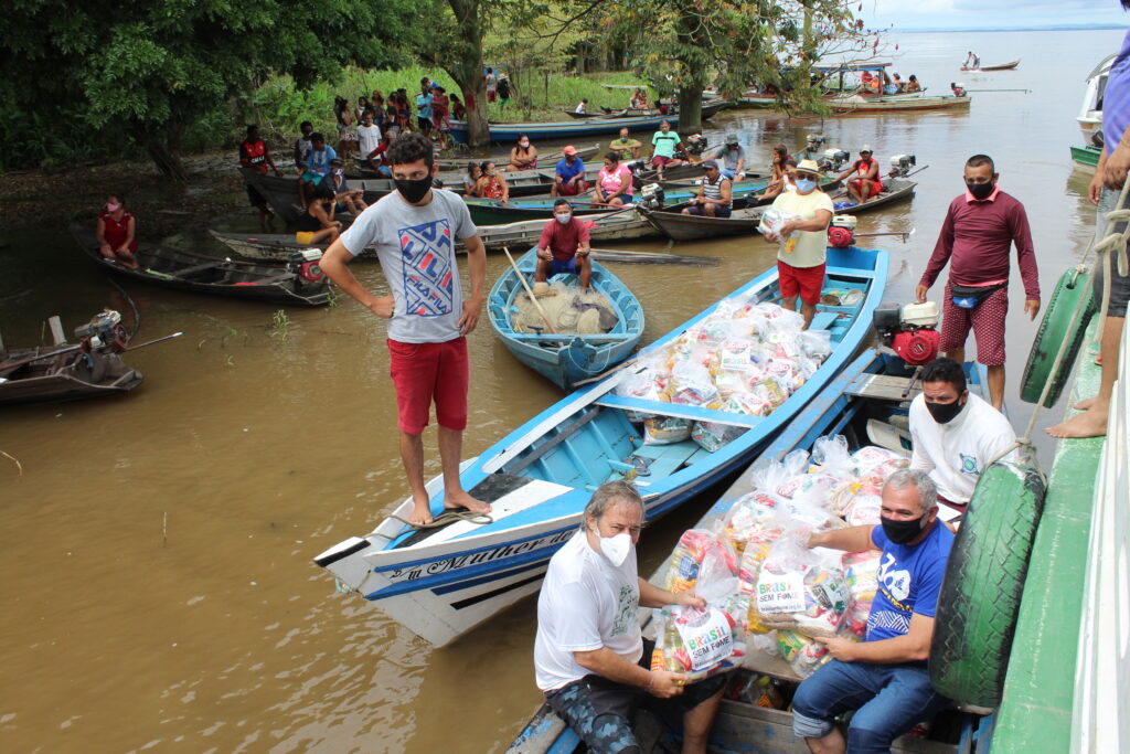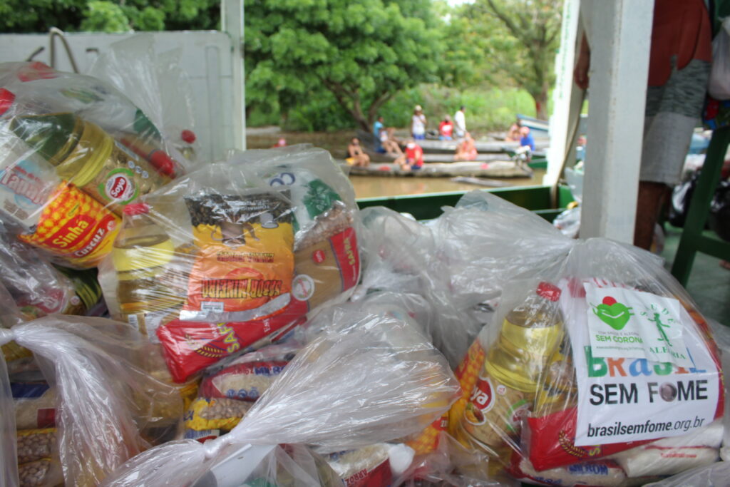 Representantes das comunidades se organizaram para distribuir cestas básicas entre as famílias beneficiadas pela ação.