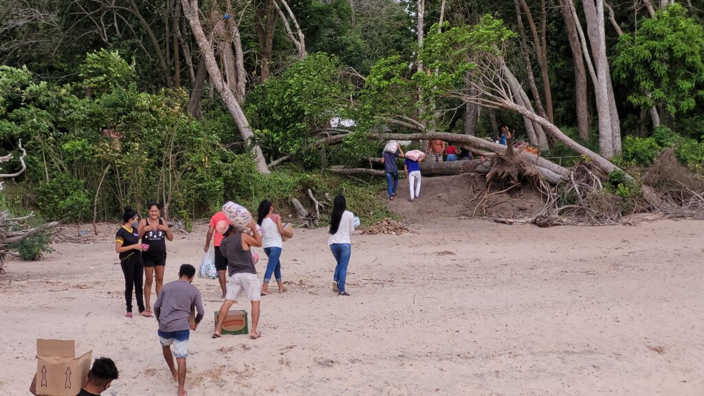 “Hoje está sendo um dia muito feliz para nossos alunos. Nesse tempo de aulas que ainda não voltou cem por cento, é uma dificuldade muito grande. Nós nos sentimos muito felizes, pra mim como gestor, é até um alívio gente estar com essa merenda pras crianças. Porque eles estudam de 7h às 11h30 da manhã. E todos os dias a gente vê que eles perguntam pra gente se vai ter merenda. Nós temos o apoio da prefeitura, mas não recebemos há mais de quinze dias. E ter esse apoio do Criança Esperança e do Saúde e Alegria pra nós é maravilhoso” – relatou o Diretor da escola Indígena Nossa Senhora de Lourdes, Aldeia de Vista Alegre do Capixauã, Rio Tapajós, Kennedy Colares.