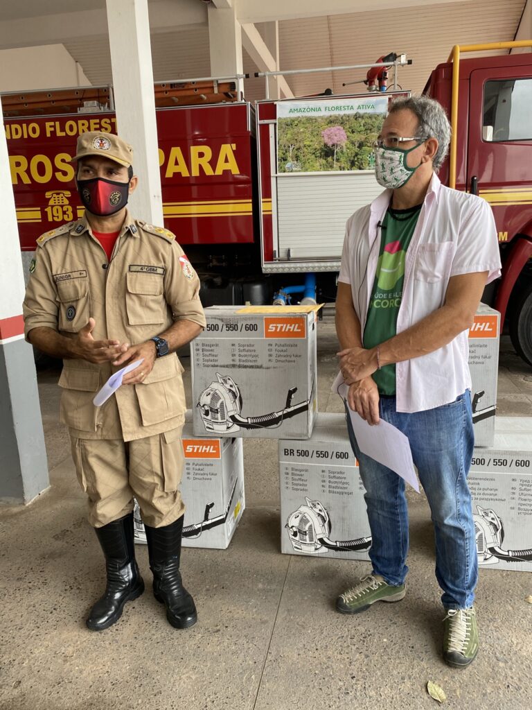 Na região, durante a época de início das secas, começa também a temporada de queimadas em áreas florestais que abrigam enorme riqueza de diversidade vegetal e animal. E sempre nesses mesmos períodos de cada ano, o Projeto Saúde e Alegria (PSA) renova seus apoios às formações de brigadistas, campanhas de prevenção e combate aos incêndios. Este ano, o PSA se antecipou ao período de queimadas com essa doação ao Corpo de Bombeiros de modo que já possam iniciar os devidos treinamentos para o uso de sopradores.