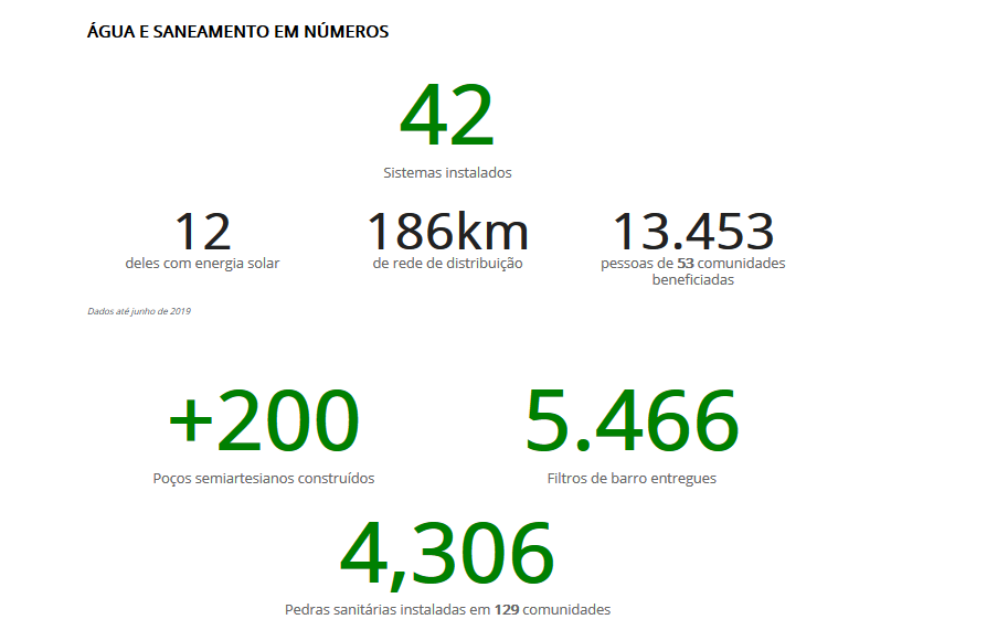 Outra ação intensificada no inicio deste ano para melhorar as condições comunitárias no enfrentamento a epidemia foi a melhoria do acesso à água e saneamento, como a construção em massa de novos banheiros e sistemas de abastecimento movidos a energia solar.