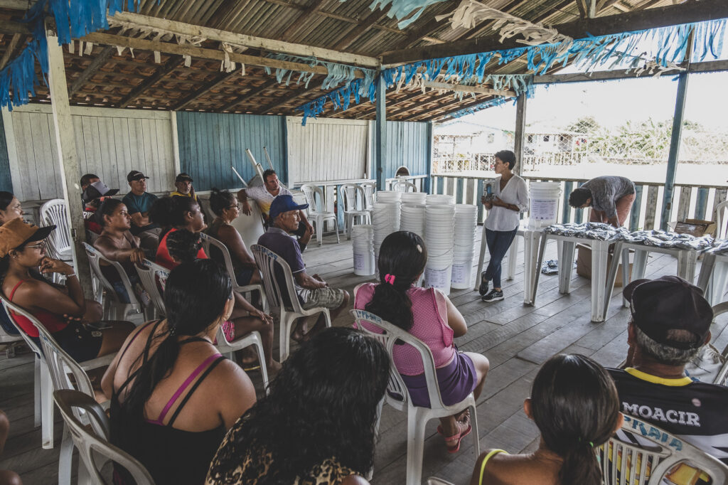 Comunidade Igarapé da Praia reunida para receberem filtros-baldes – Foto: Leonardo Milano