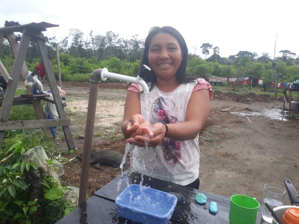 A cada nova conclusão dos sistemas, o momento era de alegria para a equipe do PSA e principalmente para as populações beneficiadas. Ediene Munduruku da aldeia Nova Kabarewun, falou sobre a emoção de ter água potável na torneira: “Agradecer pelo apoio. Conseguimos a instalação de poço artesiano na nossa aldeia. Estamos muito felizes com a água na nossa torneira que trouxe pra gente facilidade pra fazer as nossas coisas, ter água boa ao invés de pegar dos igarapés que estão contaminados”.