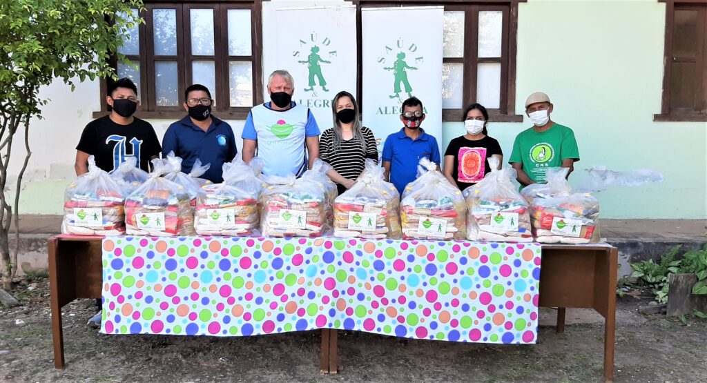 Mil cento e cinquenta famílias serão beneficiadas com a doação de cestas de alimentos não perecíveis, entregues pela campanha à Cooperativa Mista da Floresta Nacional do Tapajós (Coomflona) e Federação da Flona. O Projeto Saúde e Alegria através da campanha Com Saúde e Alegria Sem Corona com seus apoiadores, promoveu a entrega às entidades representativas que realizarão a partir da próxima quinta-feira, distribuição aos moradores.