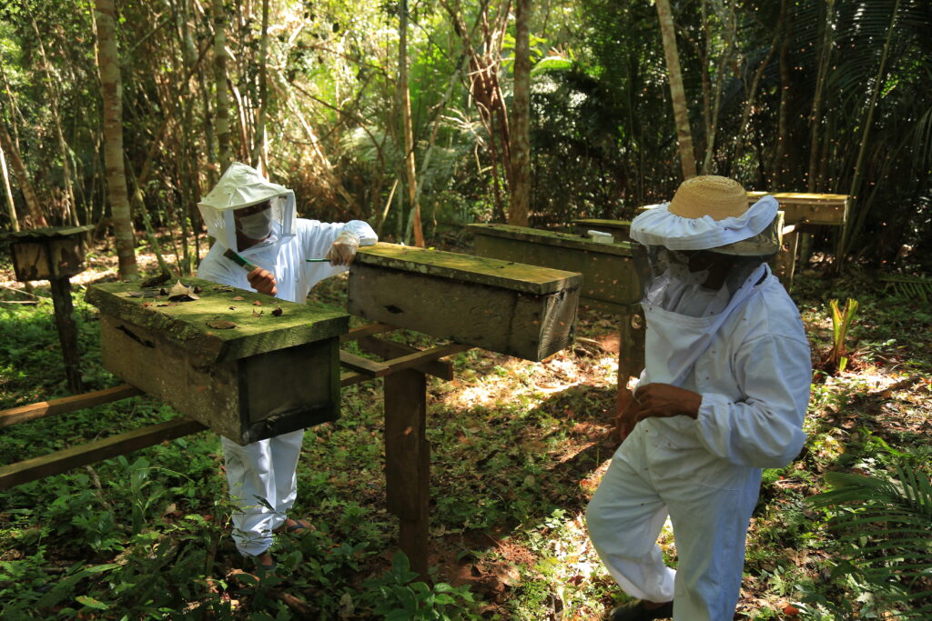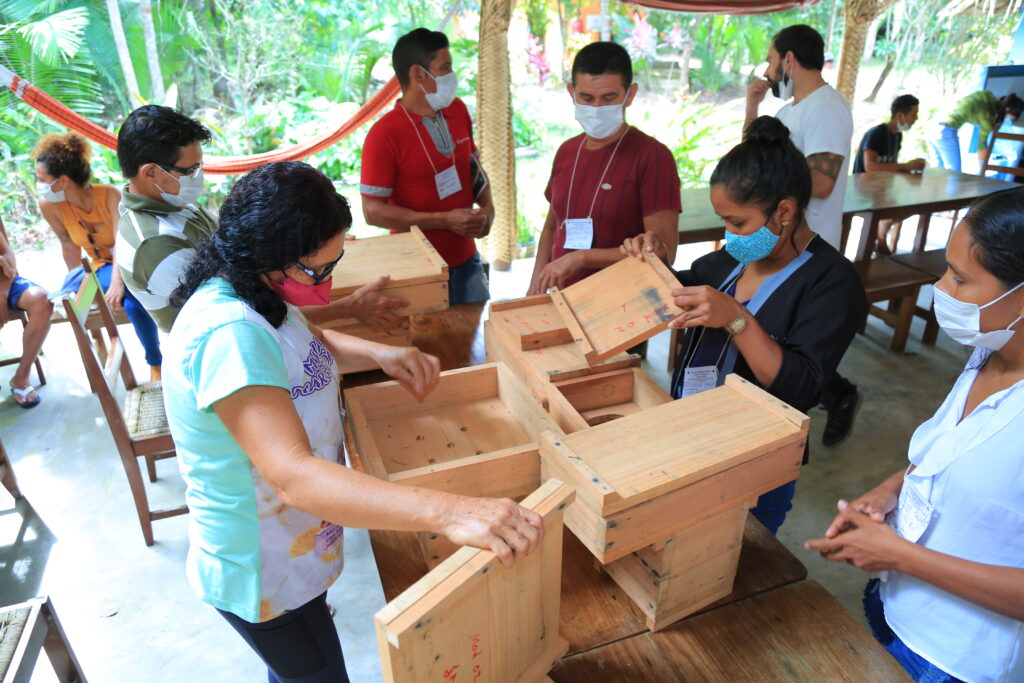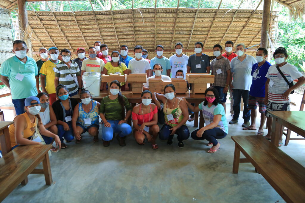 Programa Floresta Ativa do Projeto Saúde e Alegria tem realizado capacitações e fornecido infraestrutura de suporte às atividades da meliponicultura para cento e trinta e cinco famílias de dezenove comunidades em territórios do Oeste do Pará
