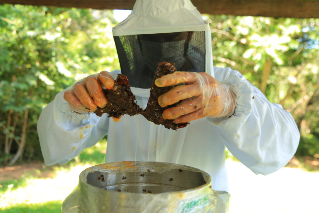 O desafio é organizar um sistema de produção que viabilize a comercialização do mel de abelha nativa no mercado formal, de maneira compatível com as características culturais, ambientais e logísticas da região. A proposta é construir coletivamente tecnologias e técnicas para a extração do mel, promovendo a segurança alimentar, conforme os padrões da vigilância.