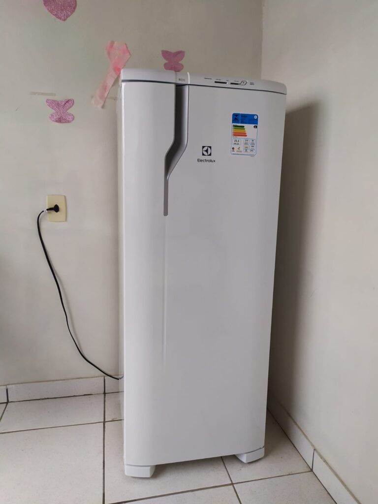 Geladeira usada para acondicionar vacinas está conectada na energia fotovoltaica. Fotos: Jussara Batista/PSA.
