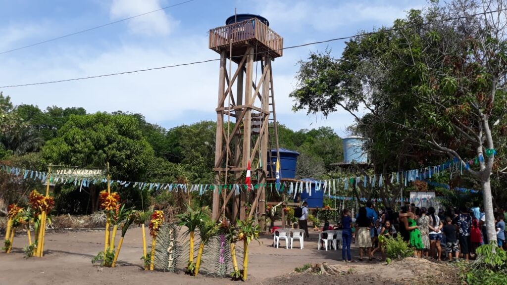 As obras do programa de acesso à água do Projeto Saúde e Alegria recomeçara no mês de agosto respeitando protocolos de segurança e neste mês de setembro chegou a vez de entregar os recursos às comunidades que destacaram como era difícil transportar o líquido do rio até as casas: