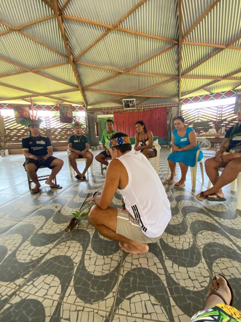 Rogério Mendes, do Seringal, ressaltou: “A gente precisa buscar esse fortalecimento com as pessoas que moram dentro da reserva, né? Buscar esse conhecimento que a gente tem de legado de defesa do nosso território que é pra gente ter mais força, né?” Ele também destacou que é essencial ampliar a comunicação, considerando que muitas famílias ainda não compreendem totalmente o significado da reserva, suas normas e o plano de uso. Segundo ele, iniciativas como a integração digital e o intercâmbio entre comunidades podem agregar valor e união ao trabalho coletivo.