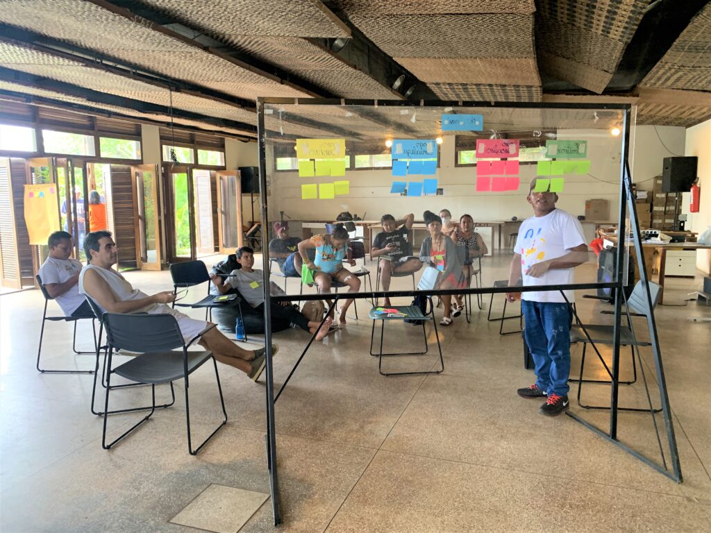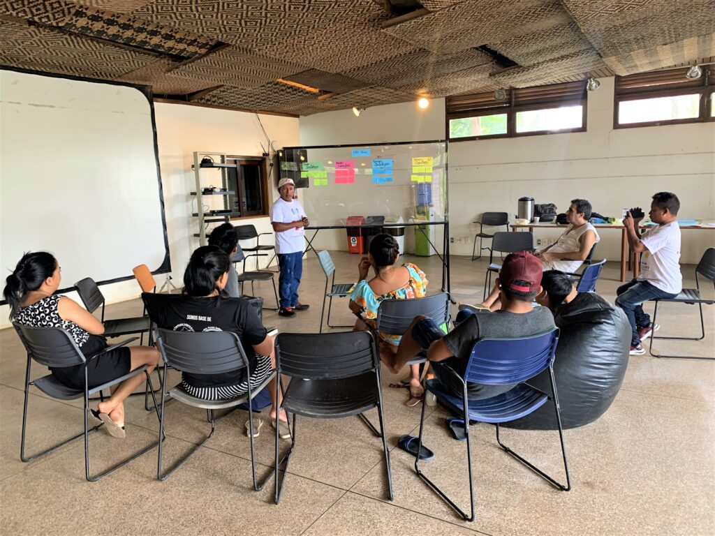 Based on the face-to-face meetings that will take place until the end of April in the seven participating communities, the board of the School of Community Networks in the Amazon will compose the curriculum of the training that takes place from July to December – seven specialists and seven leaders from each organization involved are part of the board.